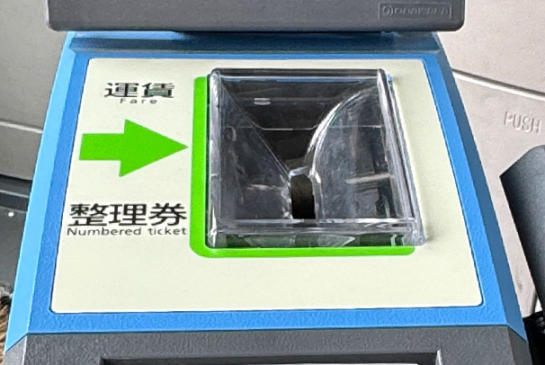 運転席横にある運賃箱に、「整理券」と現金を投入してください。